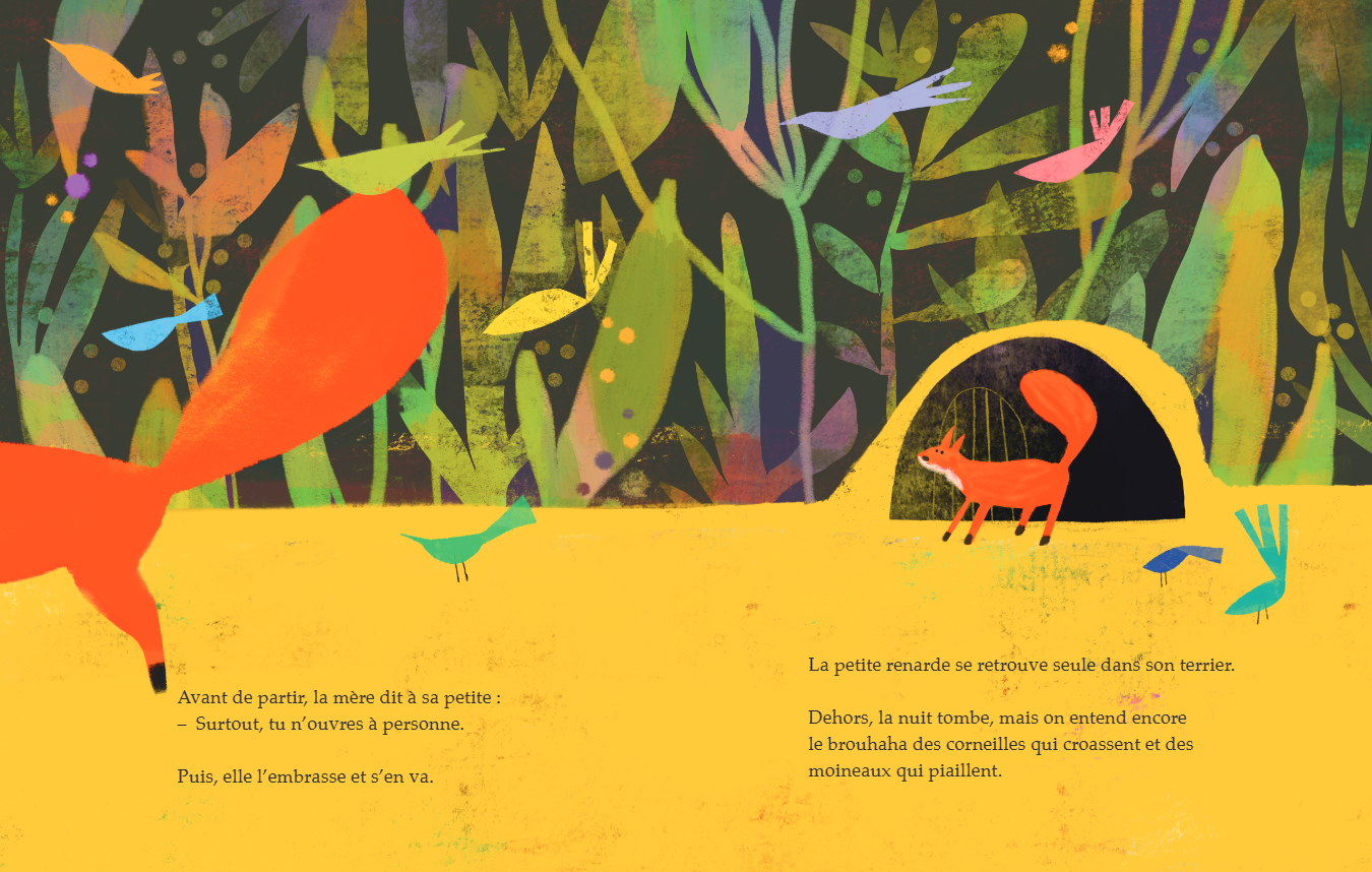 아이들은 다른 사람과의 관계에서 자라고 성장하지만, 혼자만의 시간을 보내는 과정에서도 스스로를 구축하며, 단단히 만들어 간다. 누리아 피게라스(Núria Figueras)가 글을 쓰고, 안나 폰트(Anna Font)가 그림을 그린 그림책 『La visite』 (방문)은 2025년 알리스 출판사(Editions ALICE)에서 출간된 그림책으로, 엄마가 잠시 집을 비운 사이 그 시간을 온전히 누리는 작은 여우의 이야기를 담고 있다.